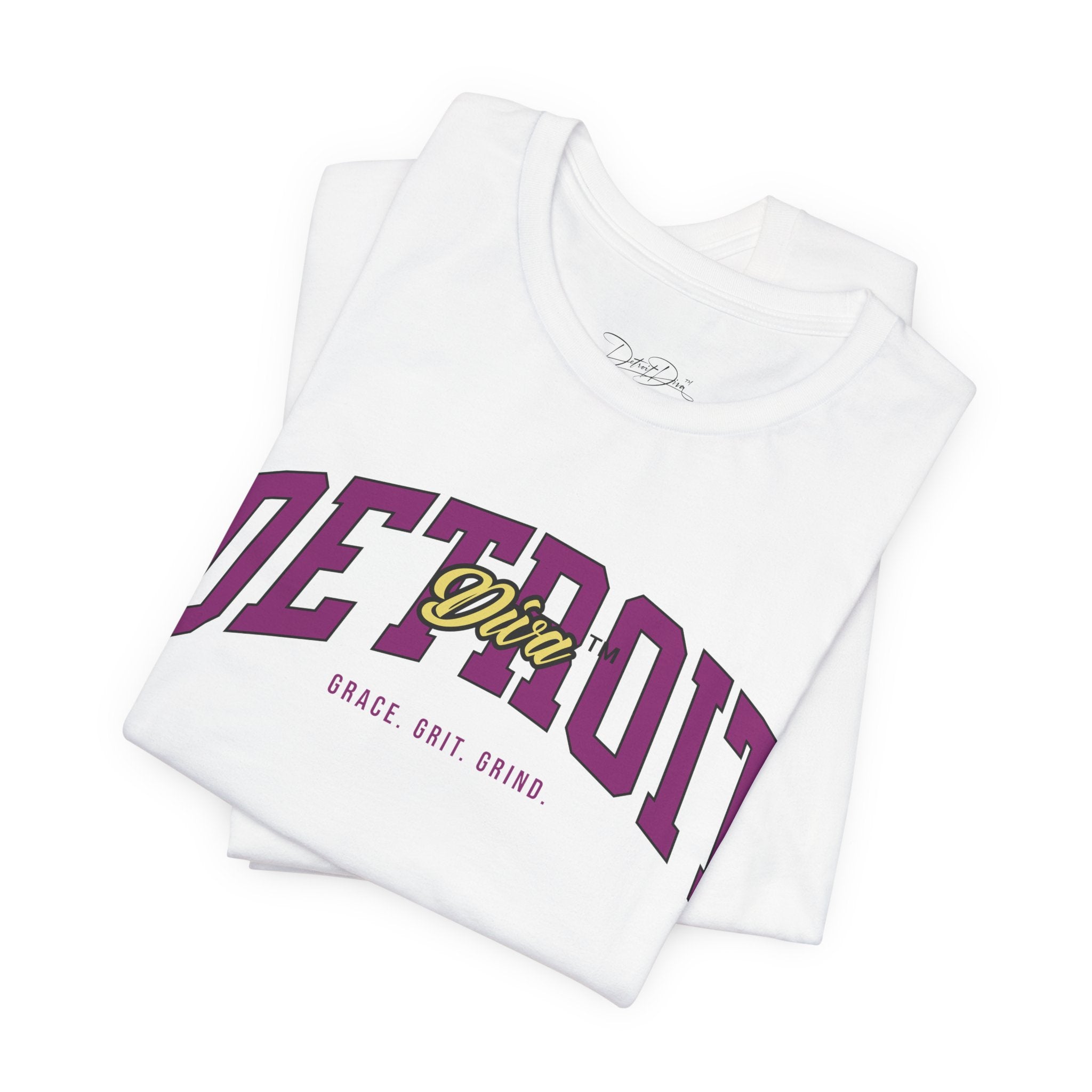 The Detroit Diva™ Grace. Grit. Grind. Tee captures the discipline behind the confidence—the balance between composure, resilience, and relentless focus. It’s bold in its simplicity and intentional in its message, designed for women who move with quiet authority and earned self-assurance.