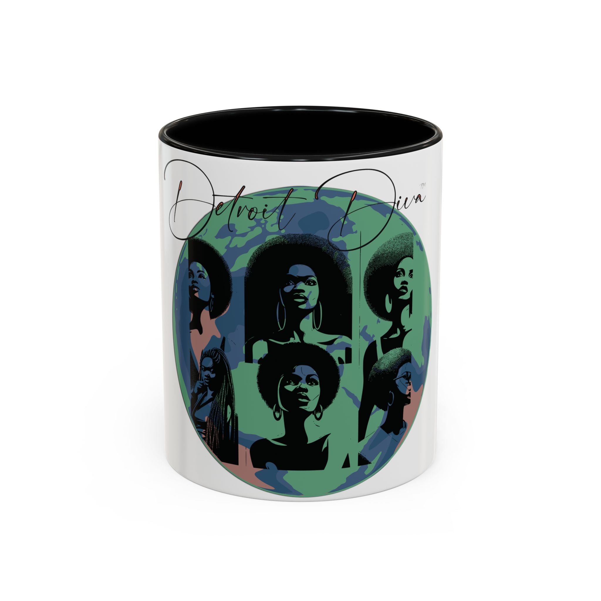 The Detroit Diva™ We're Global Mug merges strength and elegance with a worldly perspective. Its vivid design features confident Black women framed within a bold, globe-inspired backdrop—symbolizing both pride in Detroit and resonance across the world.